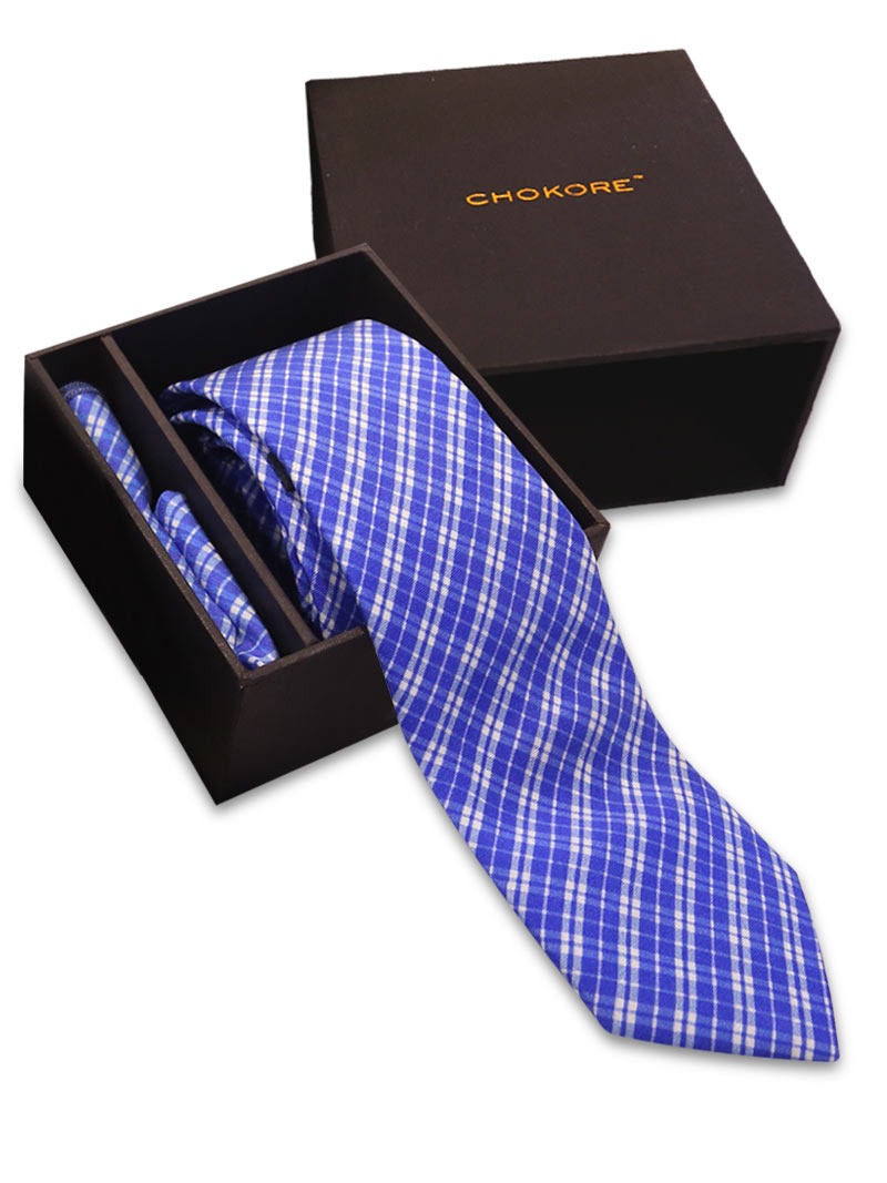 Make every eye fall for you and leave every mouth with an awe, by adding this elegant Blue Check Necktie and Matching pocket square to your outfit. It’s superior quality will also be a win win for you. Packed in Specially Crafted Box for more Elegance.
