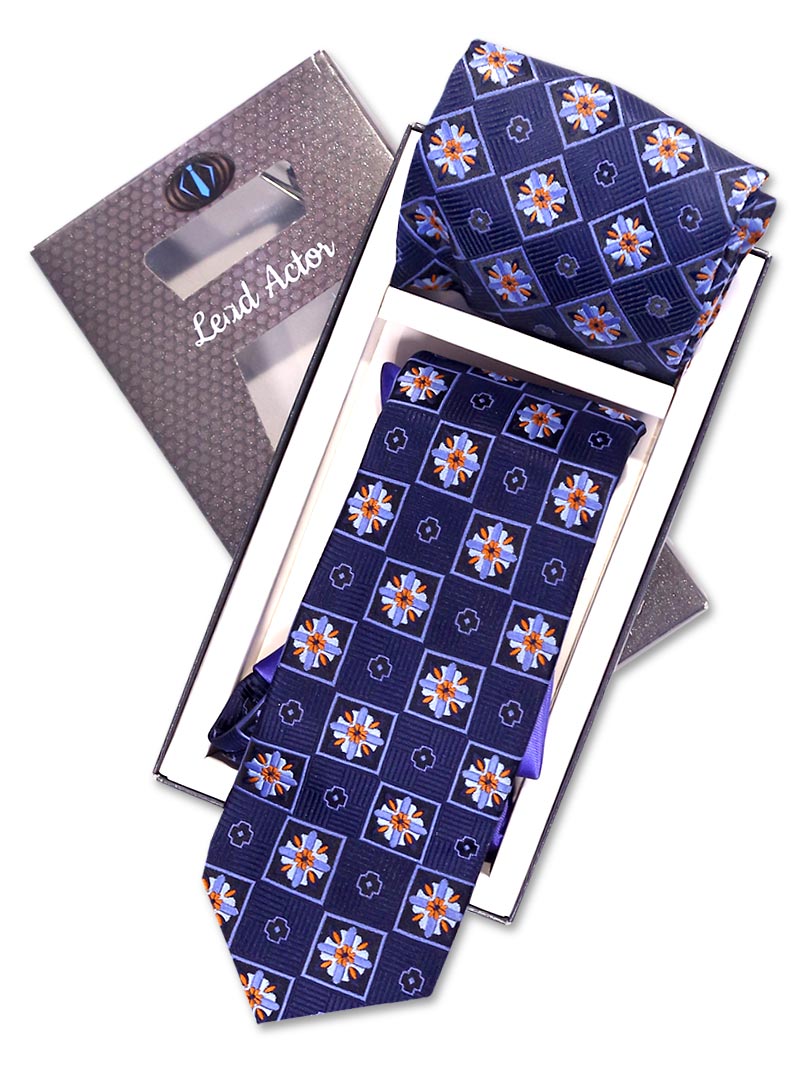 Bring your wardrobe all the essence of royalness by adding this Dark Blue printed necktie and pocket square to it. The premium quality will be a win win for you.