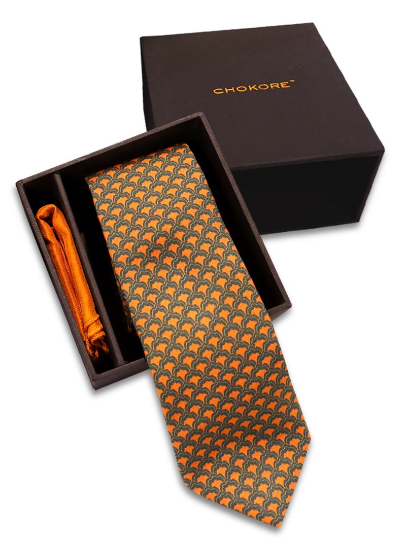 The Orange Printed Neck Tie set is the perfect choice for you. The colour scheme of this set will make your personality shine and impress.