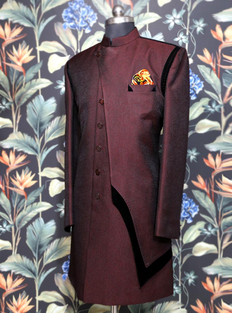 Looking to buy Indo western clothes for the next grand festive occasion? Mubarkaan recommends this suave Maroon Indo-western Set for an ultimate stylish look!