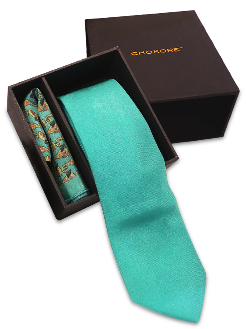 Bring in the complete summery fresh vibes to your wardrobe by adding this elegant Turquoise Necktie and Printed Pocket Square to it. Packed in Specially Crafted Box for more Elegance.